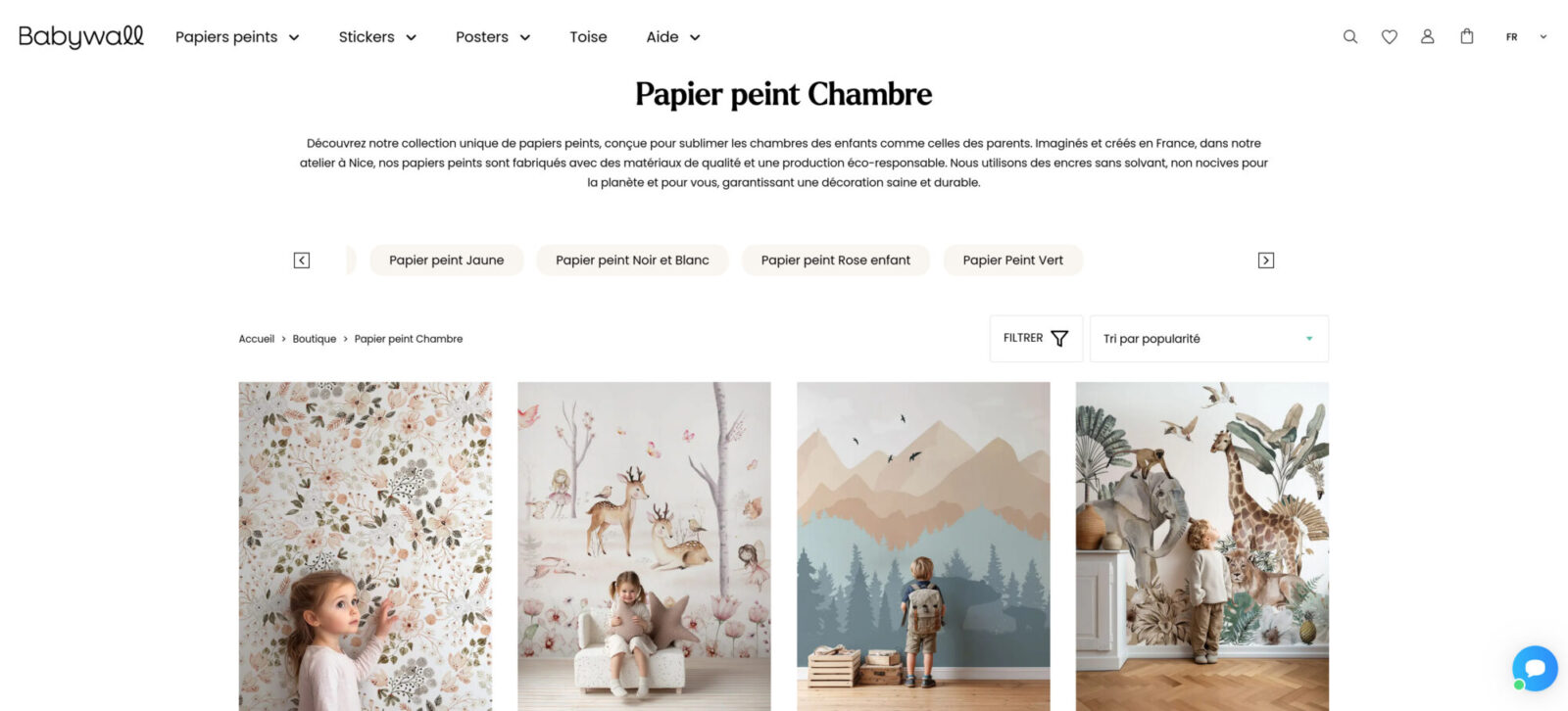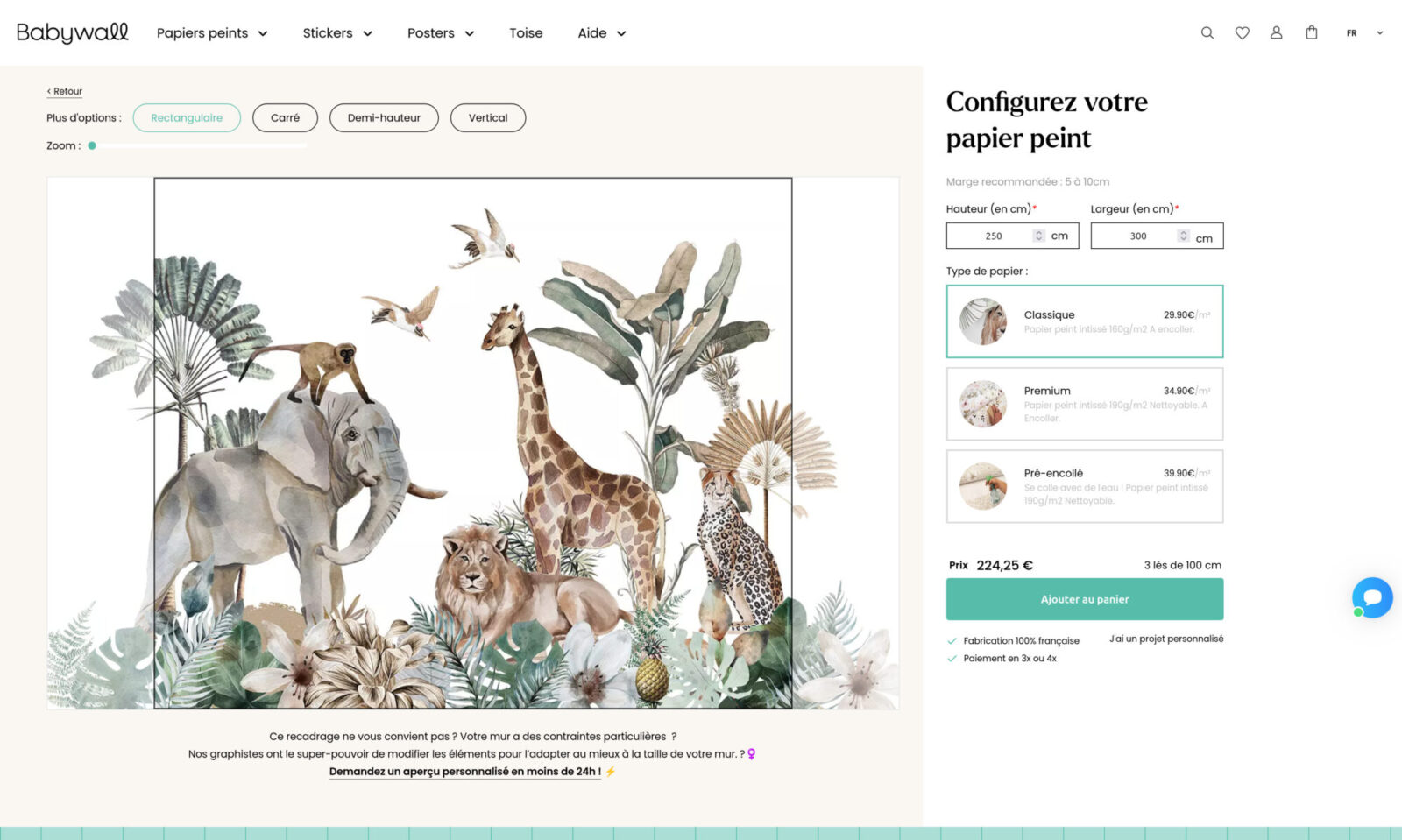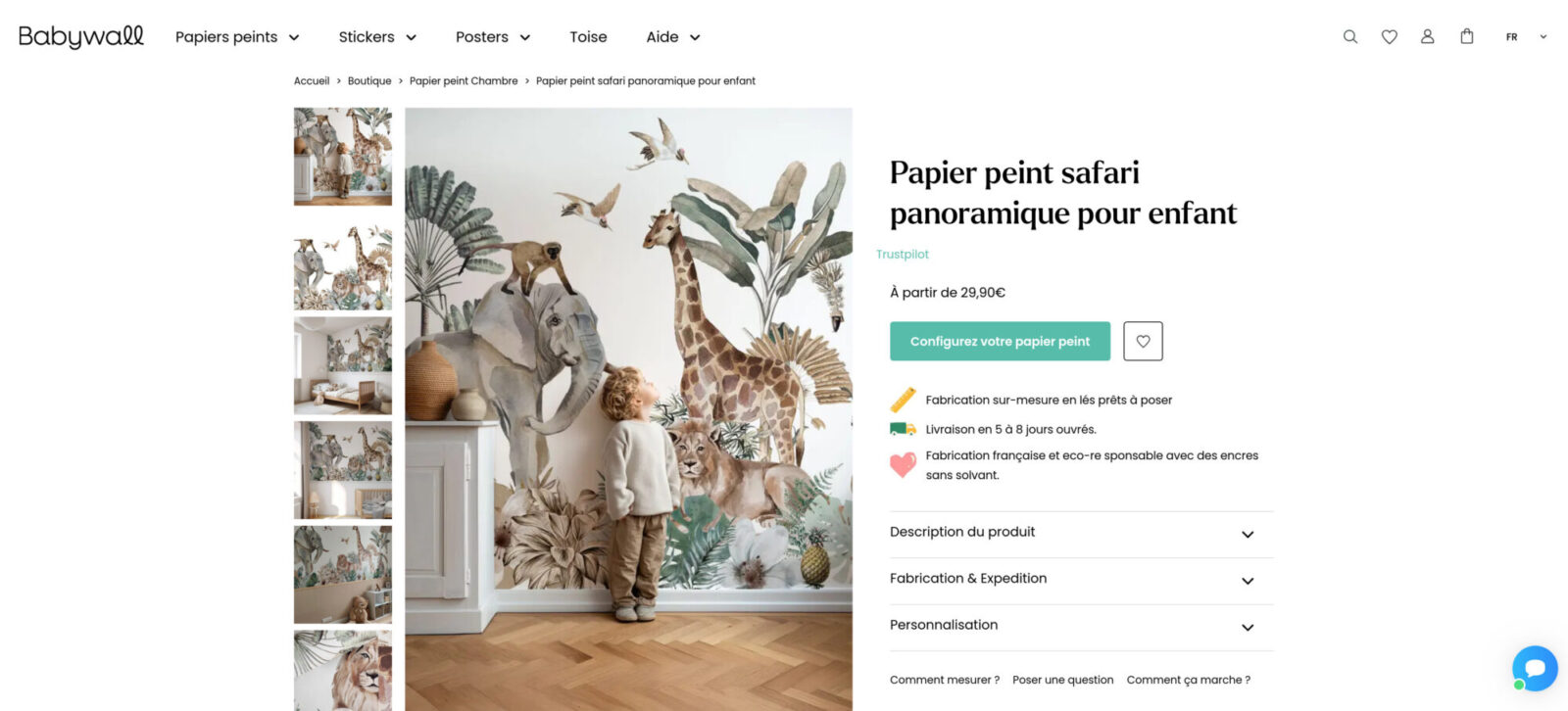 Babywall.fr est une boutique en ligne spécialisée dans le papier peint personnalisé. Le site e-commerce est au cœur de leur activité : les clients choisissent un visuel, adaptent les dimensions à leur mur et passent commande directement en ligne.